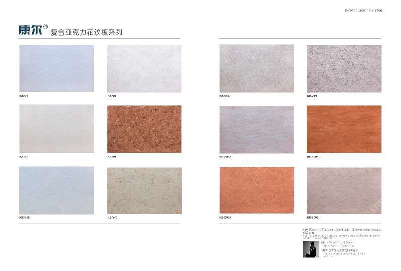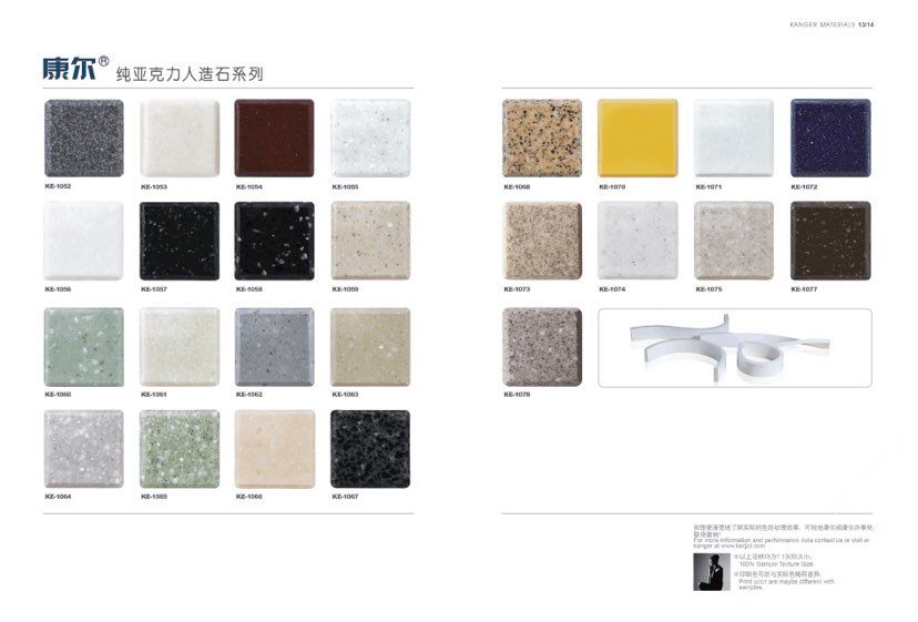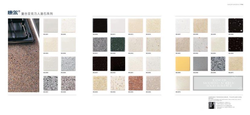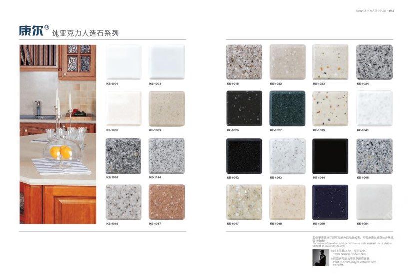 康爾人先后開發(fā)出了色彩豐富的 100% 純亞克力系列,復合亞克力系列,不飽和樹脂系列,石英石、集成成品臺面和高分子復合材料門板系列。產(chǎn)品系列多樣、顏色豐富、品質(zhì)穩(wěn)定、已銷往世界幾十個國家,深受國內(nèi)外客戶的好評.