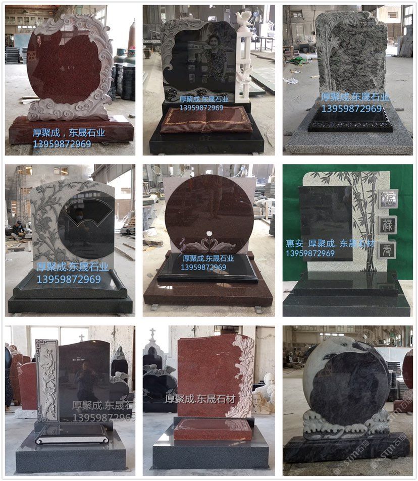 厚聚成石材惠安東晟工廠位于福建惠安蓮西工業(yè)區(qū),專業(yè)生產(chǎn)各種類型的墓碑。主要產(chǎn)品有中國墓碑,俄碑系列,美碑系列,歐碑系列。中國墓碑,分為傳統(tǒng)墓碑,藝術(shù)墓碑,豪華墓碑及墓飾系類,可以接受定制,歡迎來工廠實(shí)地考察,聯(lián)系電話:13959872969,何先生。