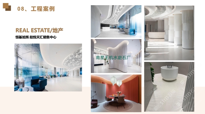 東星集團是國內(nèi)擁有40多年經(jīng)營歷史的大型石材全產(chǎn)業(yè)鏈生產(chǎn)運營投資的集團企業(yè)。下屬包括:南星大理石,東星人造石-無機水磨石,東星奢石,東星國際貿(mào)易,東星文旅,東星地產(chǎn)等。公司擁有龐大的加工生產(chǎn)能力、是保利、恒大、中海、綠地、萬達、星河灣、雅居樂等大型房地產(chǎn)企業(yè)的戰(zhàn)略合作伙伴。產(chǎn)品線覆蓋奢石、玉石、大理石、崗石、水磨石、花崗巖等產(chǎn)品。旗下東星無機水磨石廠主要生產(chǎn)無機水磨石/無機洞石及其它改性水泥預制產(chǎn)品。