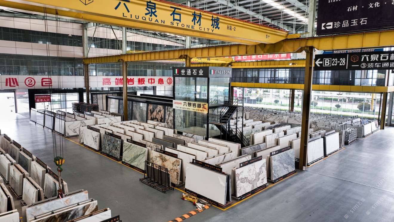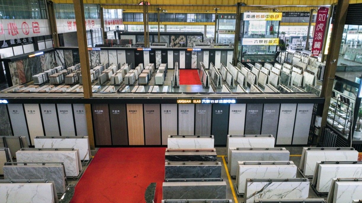 中國江蘇南通六泉石材城3號通道六泉巖板中心倉