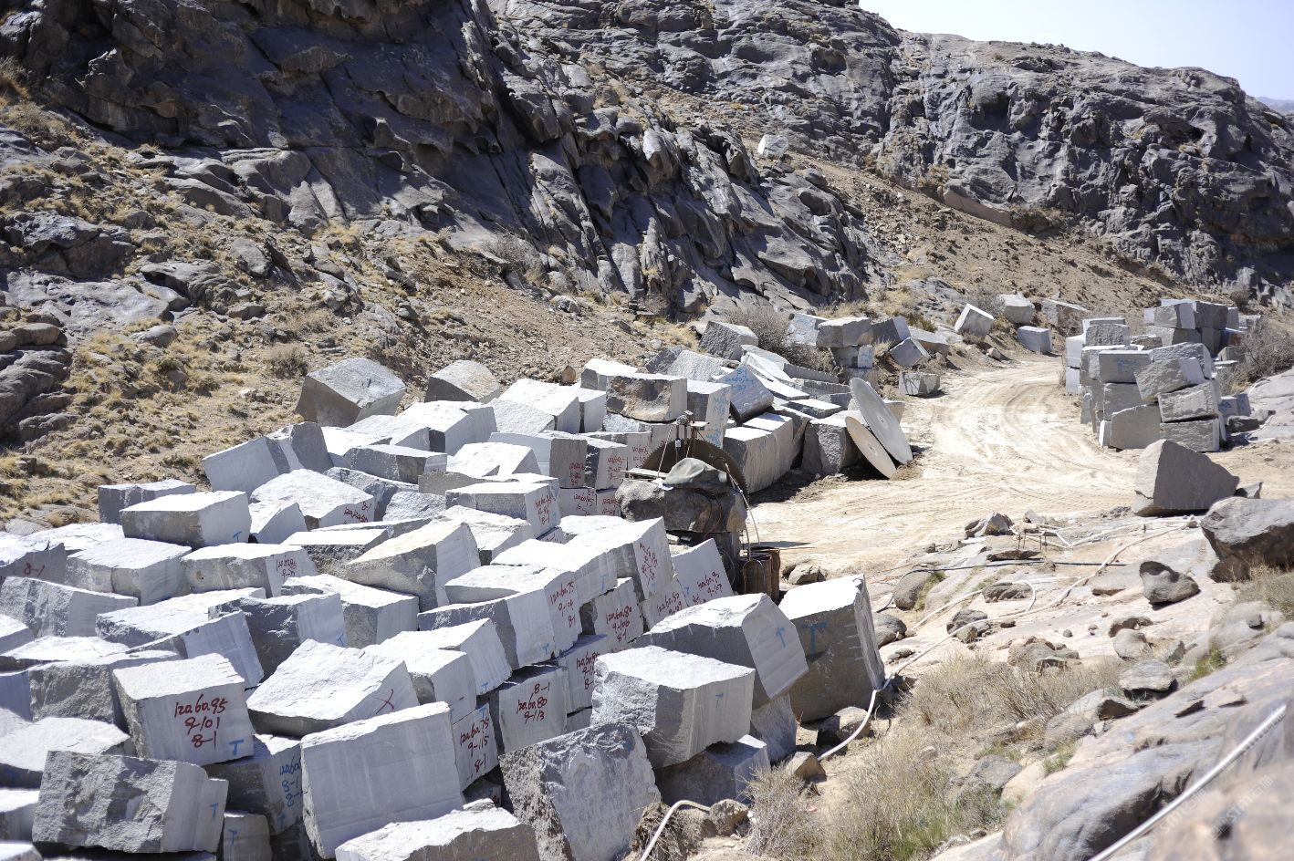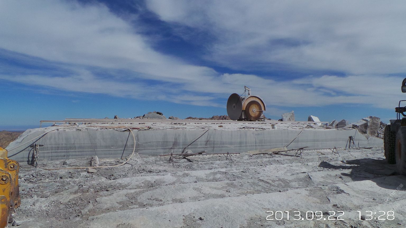 新疆煒通石材工貿(mào)有限責(zé)任公司成立于2007年,是一家集礦山開(kāi)采、板材加工為一體的石材公司。公司擁有的奧莫爾塔格礦山位于哈密市東北方向,直線(xiàn)距離約160千米,礦區(qū)面積1.25平方千米,資源儲(chǔ)量約800萬(wàn)立方米。礦山擁有一批優(yōu)秀的管理人員、技術(shù)精湛的開(kāi)采隊(duì)伍和先進(jìn)的機(jī)械設(shè)備,現(xiàn)有柴油發(fā)電機(jī)組8臺(tái),濕式切石機(jī)6臺(tái),滿(mǎn)負(fù)荷生產(chǎn)規(guī)劃為每年5萬(wàn)立方米。