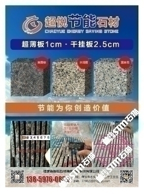 發(fā)布信息: 木瑪麗/藍(lán)寶石/英國(guó)棕(超薄板)吳總 13859760852手機(jī)微信同號(hào)-福建超悅石材薄板科技有限公司是一家專注于生產(chǎn)、研發(fā)花崗巖超薄板的研發(fā)型企業(yè),秉承“用創(chuàng)新的芯、做超薄的板、走節(jié)能的路”的發(fā)展理念,在多年來(lái)堅(jiān)持不懈的努力下,成功地研發(fā)了擁有環(huán)保性能及高新技術(shù)的超薄板,其優(yōu)點(diǎn)可與國(guó)際薄板加工技術(shù)媲美。 花崗巖超薄板被廣泛應(yīng)用于復(fù)合板領(lǐng)域,包括保溫材料和鋁蜂窩等,是建筑外墻裝飾材料的。該產(chǎn)品降低了建筑成本、節(jié)約了裝飾 材料,縮短了施工周期,是當(dāng)今社會(huì)廣為提倡和國(guó)家大力推廣的綠色、環(huán)保、節(jié)能建筑裝飾材料。 公司堅(jiān)持奉行“創(chuàng)新永不止步,品質(zhì)始終如一”的經(jīng)營(yíng)理念,爭(zhēng)創(chuàng)花崗巖超薄板領(lǐng)導(dǎo)品牌,將花崗巖超薄板做專做精做廣做強(qiáng)。