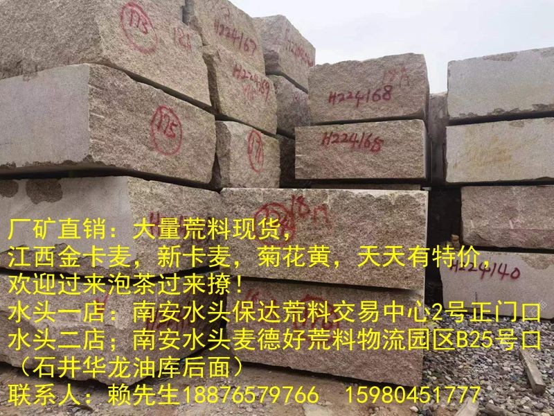 發(fā)布信息: 廠礦直銷:大量荒料現(xiàn)貨,江西金卡麥,新卡麥,菊花黃,天天有特價(jià),歡迎過來泡茶過來撩!