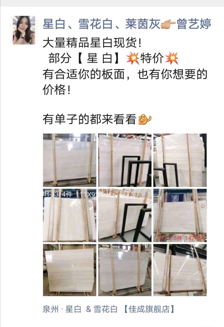 發(fā)布信息: 部分星白特價(jià),有單子的詳談! 厚度: 1.5cm & 1.8cm 地址 : 南翼石材城三號四號倉三區(qū) 【佳成石業(yè)】 財(cái)富熱線:13489368683曾