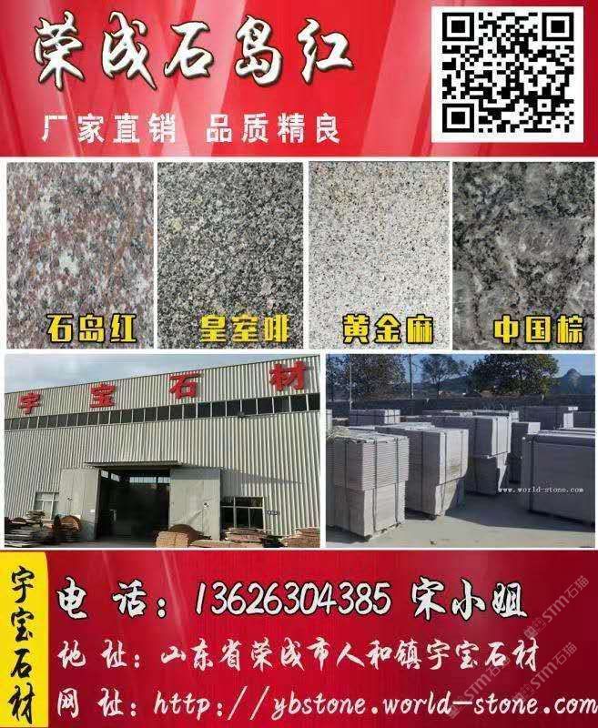 發(fā)布信息: 山東榮成市宇寶石材廠家直銷:皇室啡、石島紅8#、黃金麻,石島蝦紅(新品)、皇室珍珠、皇室玫瑰、皇室棕鉆、紫晶鉆、榮成灰、威海白麻、黃金麻等系列毛板,工程板,蘑菇石及臺階石異型石材產(chǎn)品。另有大量地鋪庫存拋售。真摯邀請新老客戶,來廠實際考察,一次合作,為友 。請加好友,找一個合適的廠家不容易,找一個可以長期合作的廠家更不容易,以防備用。電話:13626304385微信號同手機號13626304385