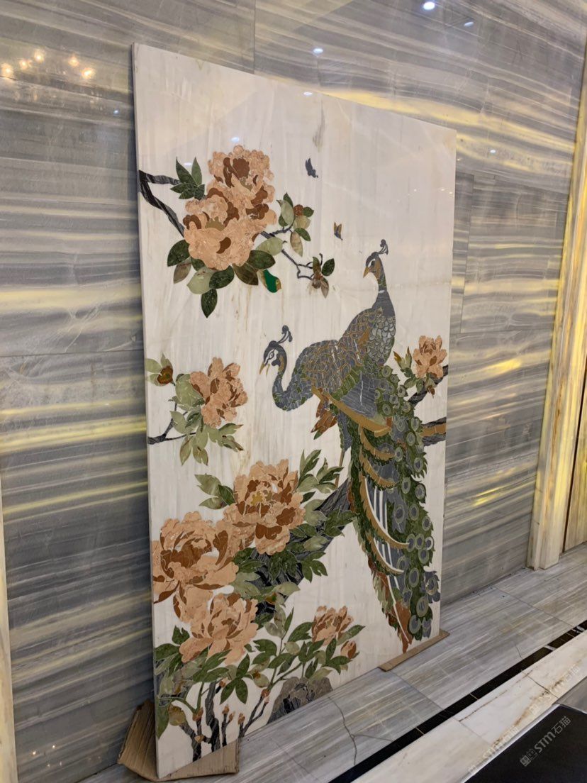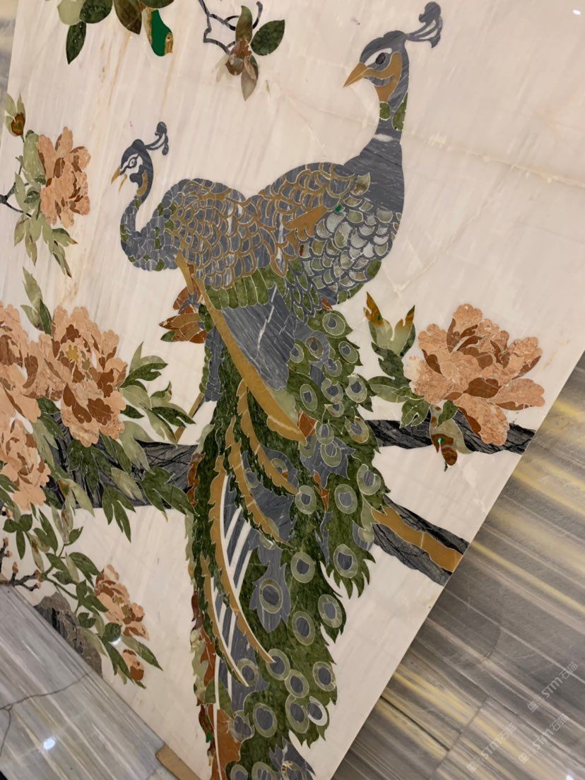 孔雀開(kāi)屏!雙宿雙飛!玉石畫18960447444