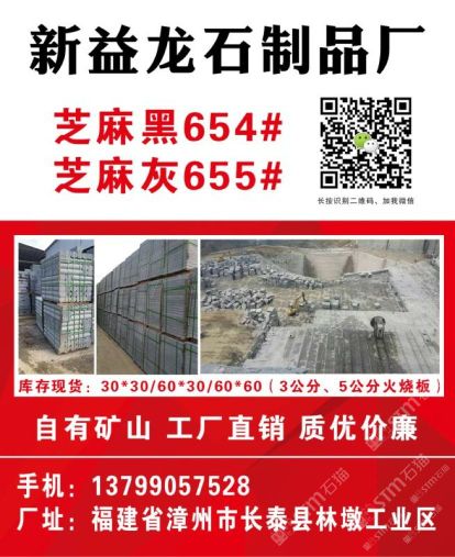 發(fā)布信息: 長泰縣新益龍石制品廠位于“中國石材g654石材生產基地”——福建省漳州市長泰縣林墩工業(yè)區(qū)。本廠集礦山開采, 石材加工,工程訂單及進出口貿易于一體;擁有成套先進的石材設備,掌握先進的石材加工技術,嚴格 控制每道生產工序,努力做到以的生產成本生產出能夠讓客戶滿意的產品,且供貨及時,價格優(yōu)惠 ,能承接大數(shù)量的定單。經過幾年發(fā)展,本廠擁有g654礦山,專業(yè)生產、加工國內外花崗巖板材。 主營:芝麻黑g654 兼營:芝麻灰g655、芝麻白g623、灰麻g688、黃銹石g682等花崗巖品種板材及各種異形;加工方式多樣化:磨光板、毛板、厚板 、薄板、規(guī)格板、火燒板、地鋪石、小方塊、自然板、拉絲板、洗衣板、染板、菠蘿面、機切板、大板 、荔枝面、路沿石、臺面板、拋光板、線條、盲人石、滾石及各種建筑工程配套用石的生產、加工和銷 售。產品不僅暢銷國內各大城市,還遠銷到美國,加拿大,英國,韓國,香港,臺灣等國家和地區(qū)。 新益龍石業(yè)以“質量為本、服務至上、信譽,客戶”為經營理念,真誠期待著與您合作,攜手共 創(chuàng)雙贏,共享石材業(yè)輝煌明天。竭誠歡迎國內外廣大朋友來人來函洽談業(yè)務,相互合作,共同發(fā)展! 洽談熱線:13799057528(連)