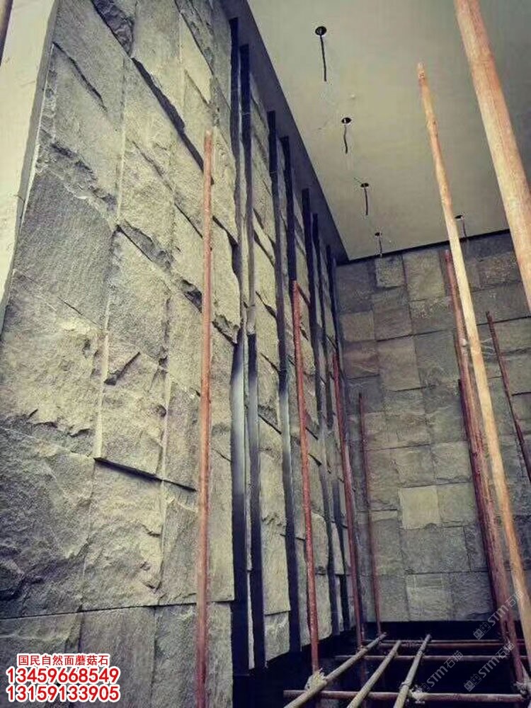 芝麻黑蘑菇石背景墻G654電視背景墻深灰麻章丘黑石