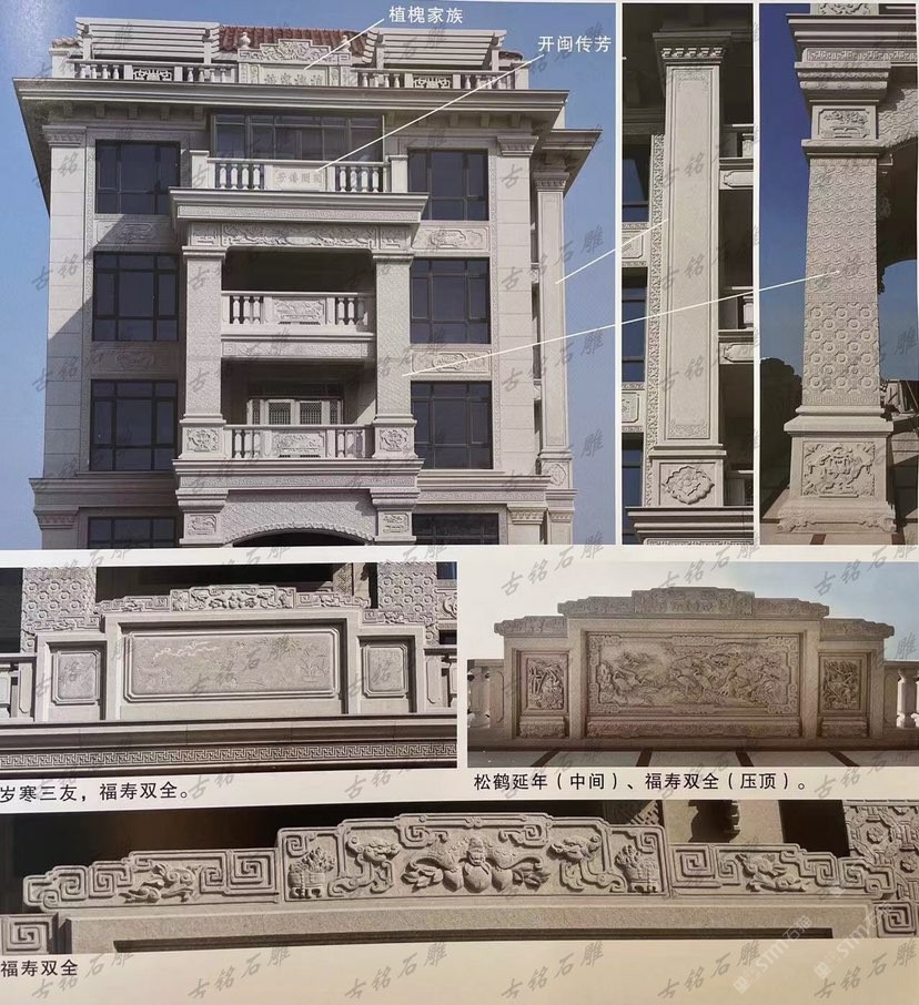 雕刻石雕別墅石材裝飾欄桿線沿入戶門窗戶露臺觀景亭