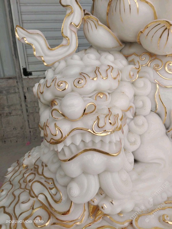 發(fā)布信息: 展望石雕工藝有限公司: 文殊菩薩漢白玉雕塑佛像,部分貼金箔。