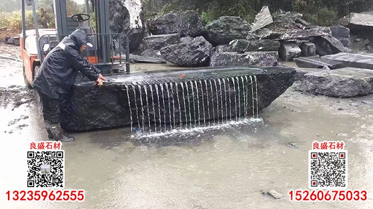 老礦芝麻黑G654石材水池水景造景工程異形加工定制