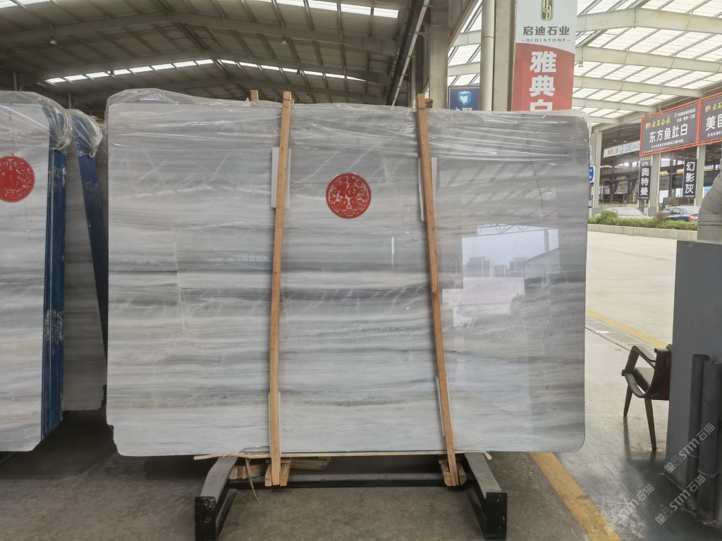 艾菲白木紋荒料1000噸大板10000平方米