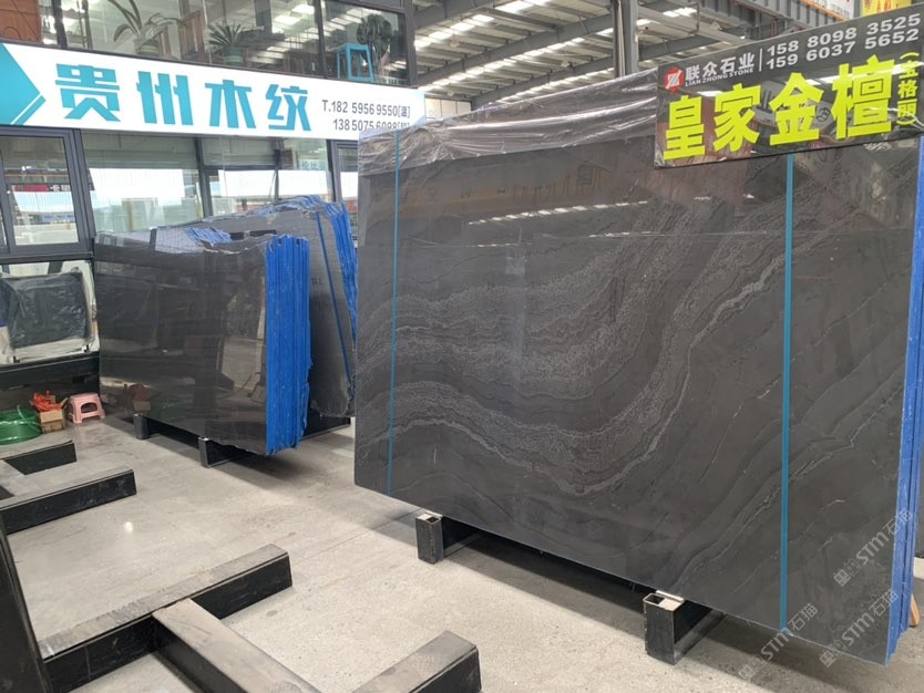 天然水磨石化石灰,皇家金檀墨染流云