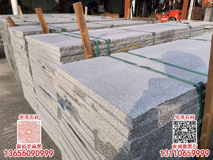 柬埔寨G654芝麻黑火燒面黑麻石材火燒板深灰麻石板