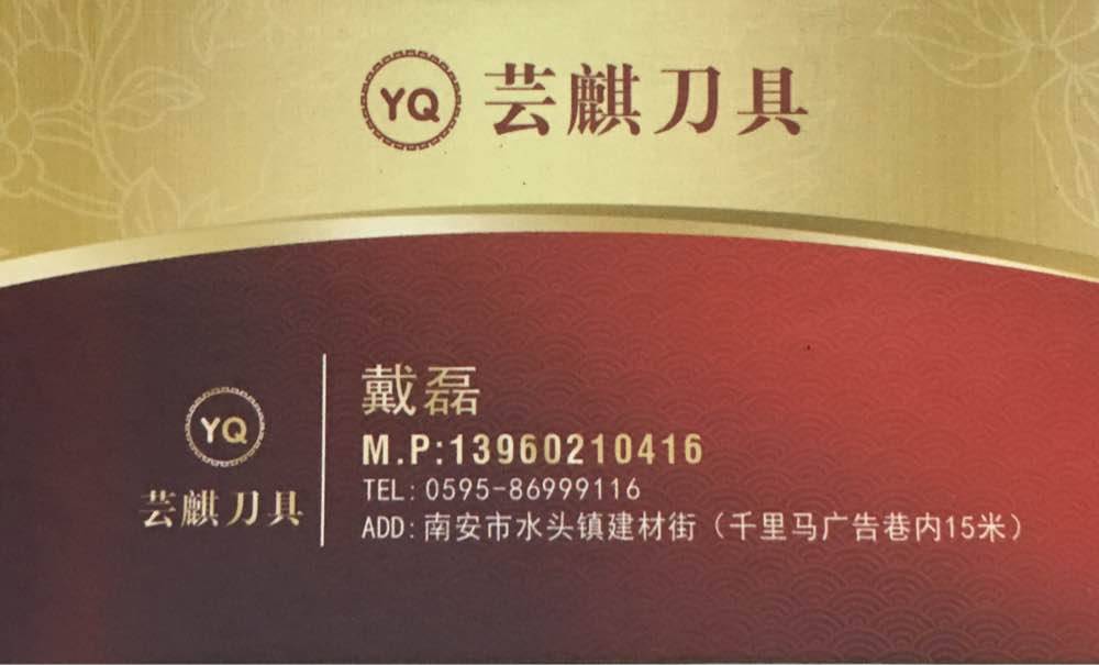 蕓麒刀具 聯(lián)系人:戴磊    139****0416 查看 手機號碼:無 主營范圍: 其他、 企業(yè)地址:福建南安水頭鎮(zhèn)建材街千里馬廣告巷內(nèi)