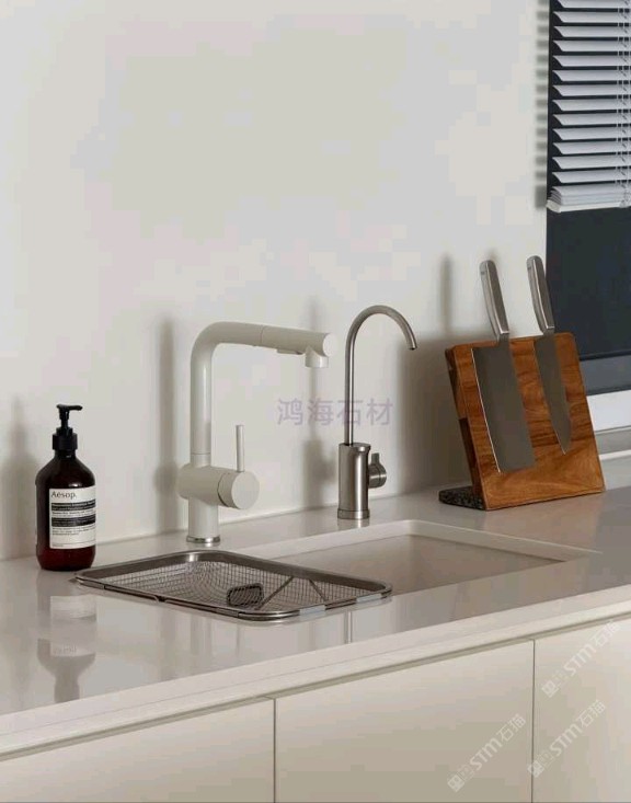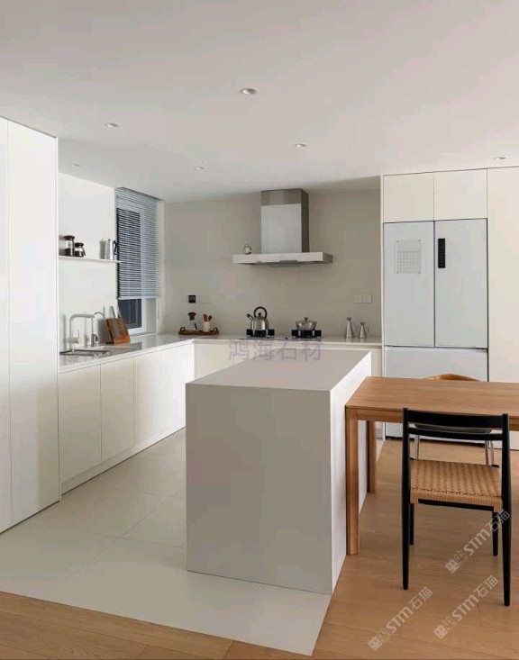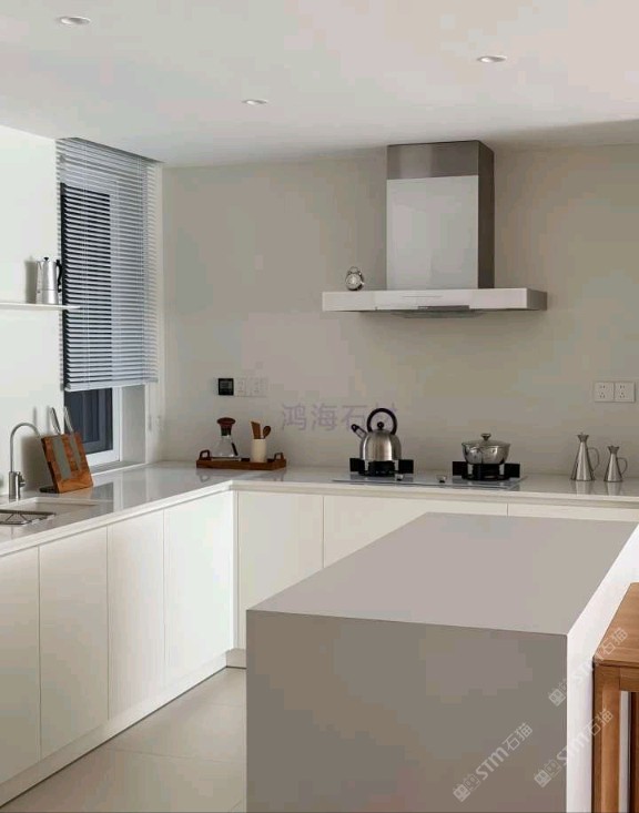 純白石英石廚房臺面墻面