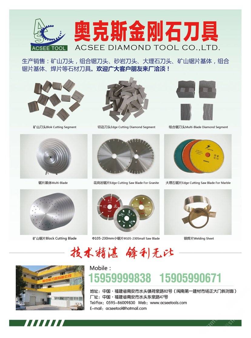 奧克斯金剛石刀具 聯(lián)系人:郭先生    159****9838 查看 手機(jī)號碼:無 主營范圍: 石材輔料及特殊工藝、 企業(yè)地址:福建泉州福建省南安市水頭鎮(zhèn)荷泉路82號