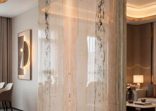 熊貓白奢石餐桌 天然水墨